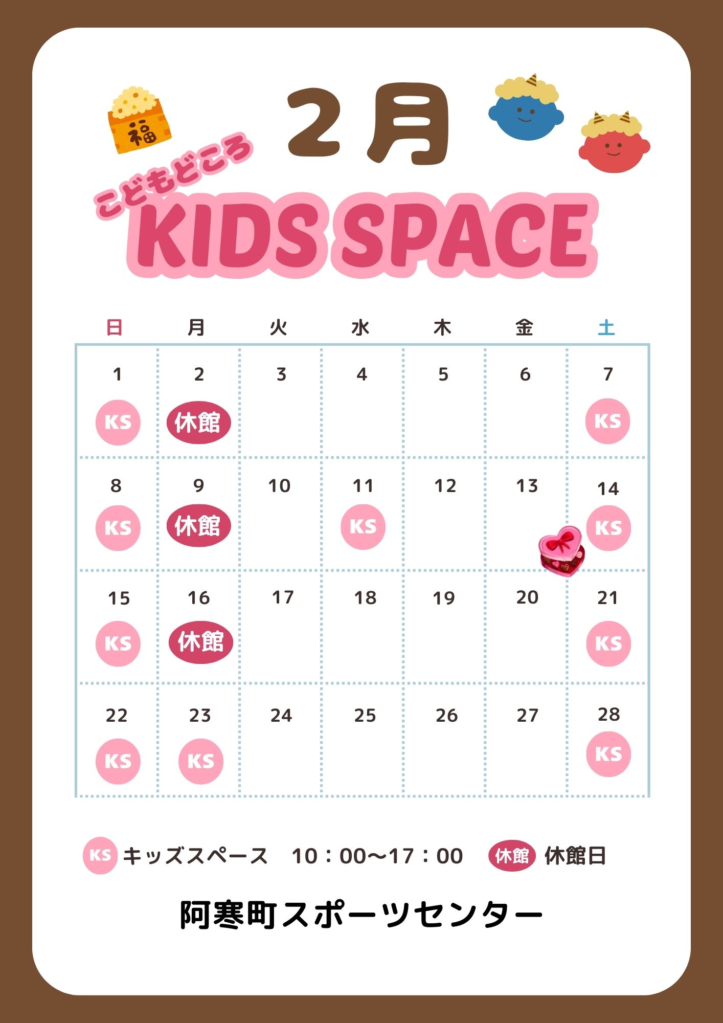 2月のキッズスペース開放予定カレンダーを掲載いたします。