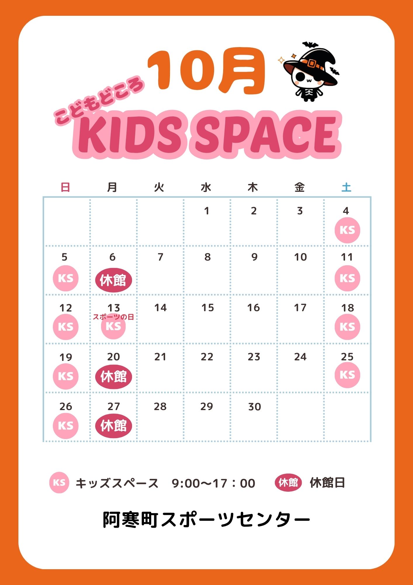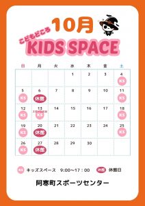 10月のキッズスペース開放予定カレンダーを掲載いたします。