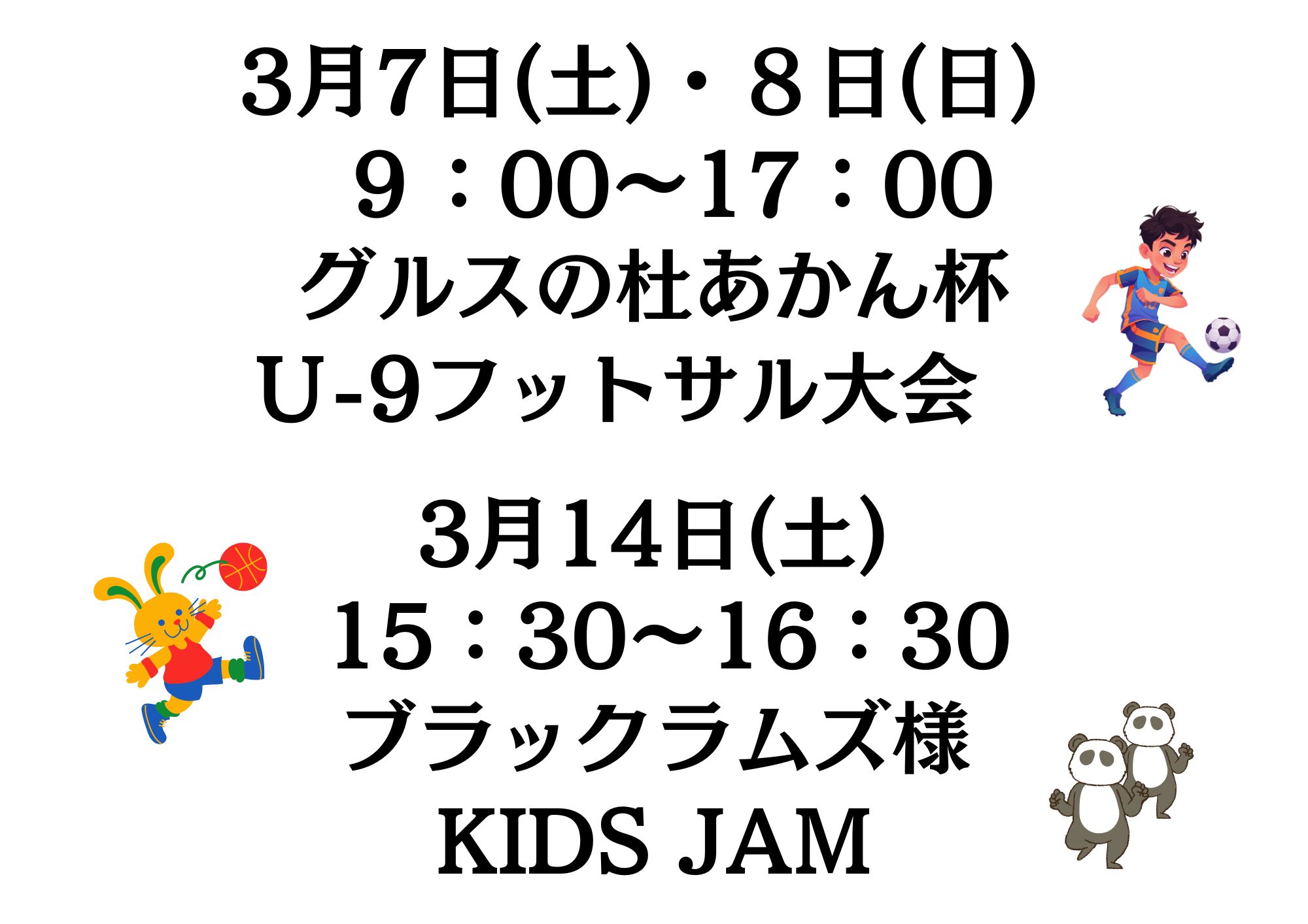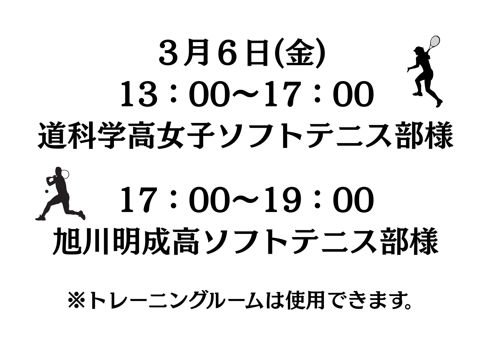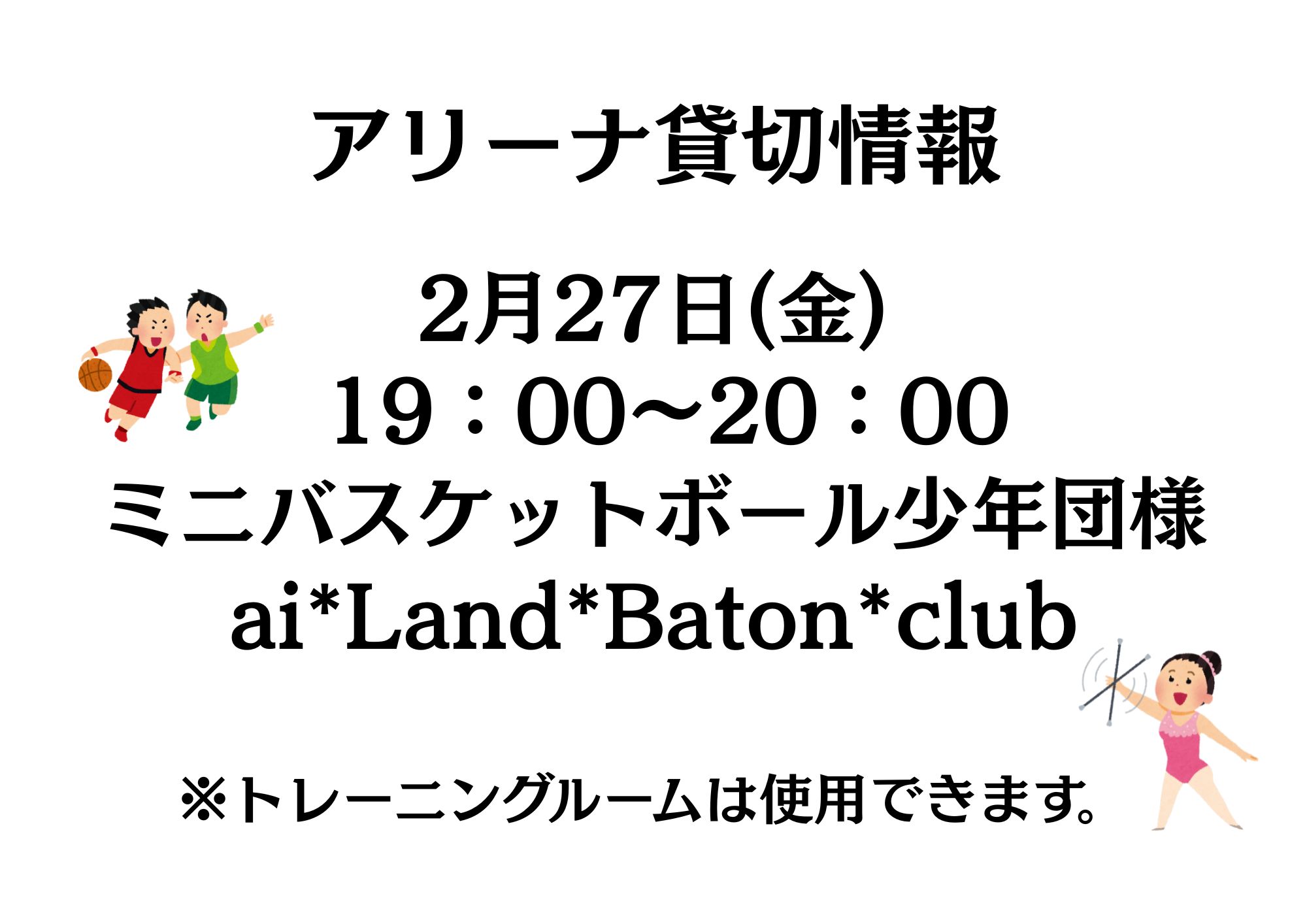 2月.3月のアリーナ貸切情報を掲載いたします。